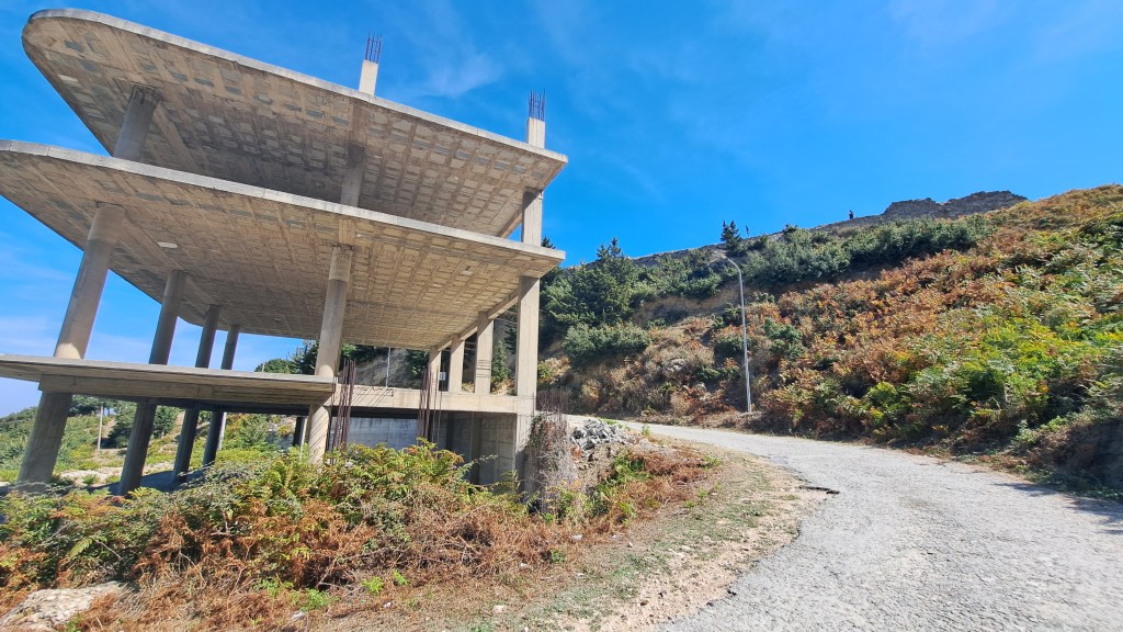 En una esquina, antes de llegar al casco antiguo de Vlorë vimos un proyecto de edificio, bien podría haber sido un hotel, pero se quedó en un principio de hotel, ya que habían abandonado la construcción. Me fue raro ver un armatoste tan grande en esa ciudad floreciente muy cerca del Monumento a la Independencia.